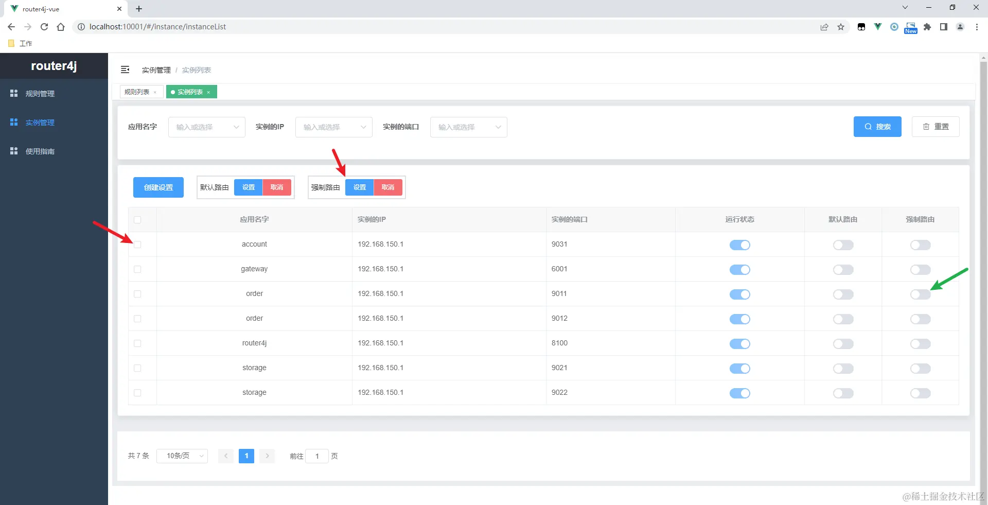 - 支持强制路由:所有url强制路由到指定实例(无论是否设置了规则)