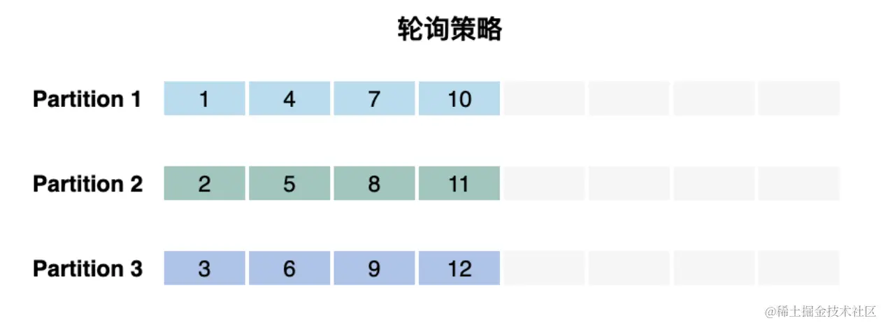 Kafka 中提供了轮训策略的实现 RoundRobinPartitioner。当用户希望将写操作均匀地分发到所有分区时,可以使用此分区策略。