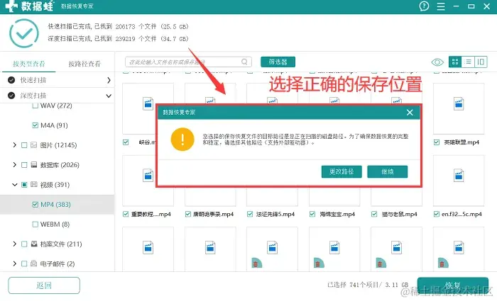 提示:文件恢复后应先选择保存在电脑的某个磁盘中。