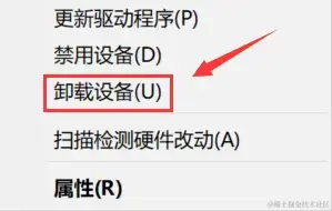 第2步:找到硬盘驱动器,右键点击 【卸载设备】 ;