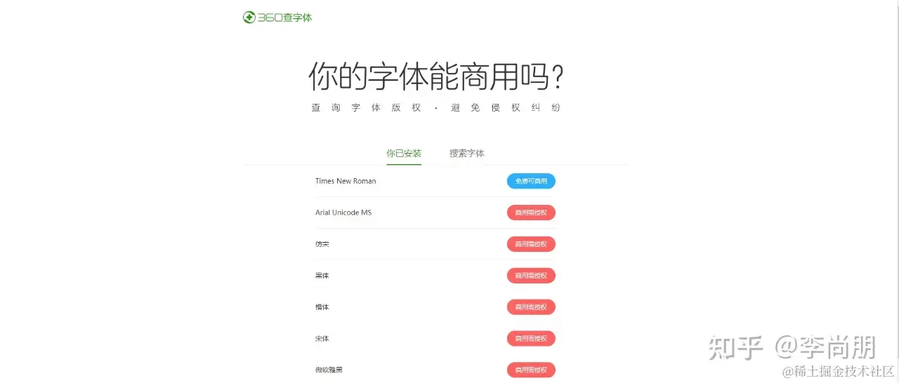 我们或多或少都应该听过XXX使用字体侵权等事件,接下来的这个查字体工具兴许可以帮你在字体使用方面少走弯路,这个网站也是在线即可使用,我们只需要把想要查询的字体名称输入到输入框中立马就知道这款字体是否可以商用,虽然给出的字体判断只那个作为参考,但是,很多情况下已经可以帮到我们了!