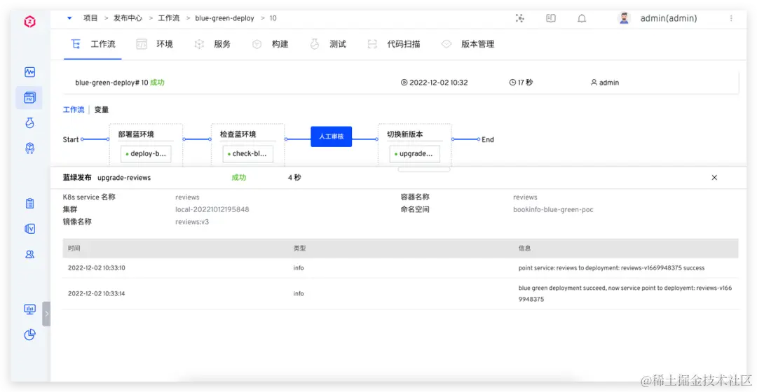以上产品均涉及到的工作流的蓝绿步骤在部署新版本以后流量切换操作。