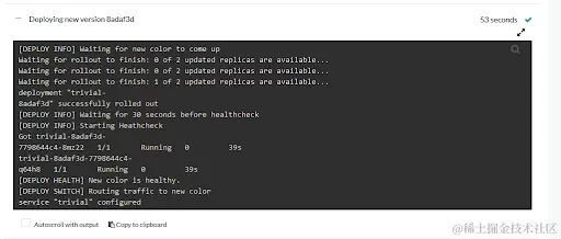 - 等待 HEALTH_SECONDS 时间,任务对新版本 pod 做一些健康检查,也可以手工做一些检查