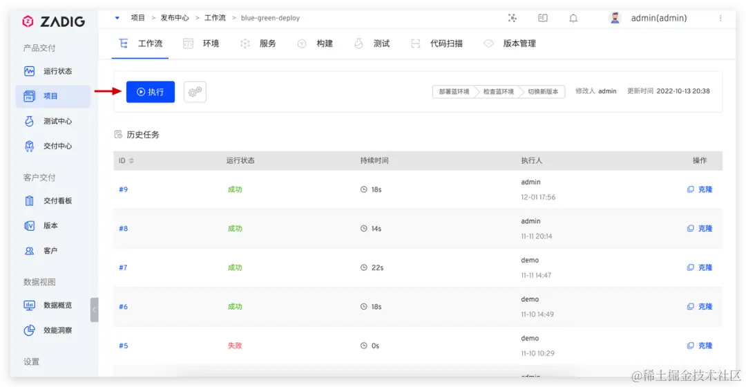 执行工作流触发蓝绿过程。