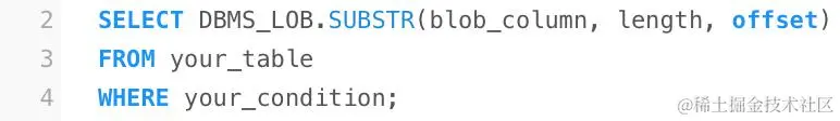 这里,blob_column是你的Blob字段,length是要读取的字节数,offset是读取的起始位置。