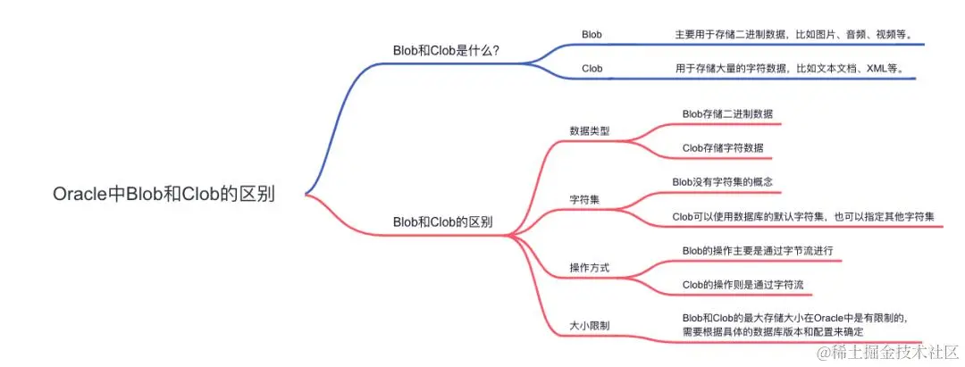 - 数据类型: Blob存储二进制数据,而Clob存储字符数据。