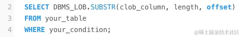 同样,clob_column是你的Clob字段,length是要读取的字符数,offset是读取的起始位置。
