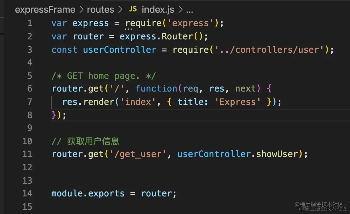 修改路由 routes/index.js,添加获取用户信息的接口