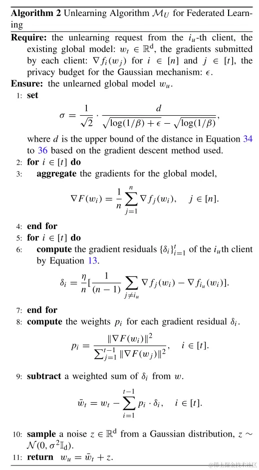- 输入:客户端的遗忘请求、现有的训练模型wt和训练过程中产生的梯度。