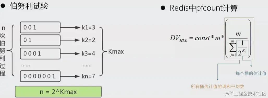 HyperLogLog原理解析HyperLogLog基于概率论中伯努利试验,并结合了极大似然估算方法,并做了分桶优化(16384个桶)