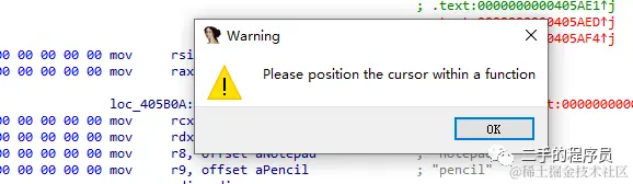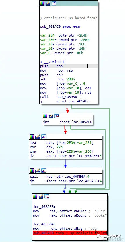 红色的部分,IDA 提示分析失败了,我们空格键切到文本模式看看: