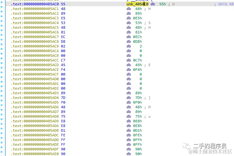 ida将这块函数暂时解释成一个一个的 byte,我们再按 C 键,将这块内容解释为代码: