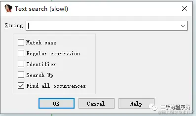 菜单 [Search] → [Text],弹出一个窗,勾选“Find all occurrences”: