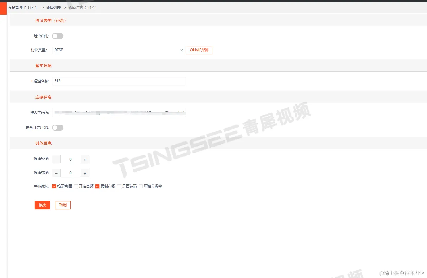 3)于是继续查看平台端,发现该通道开启了强制在线,导致在离线状态不一致;