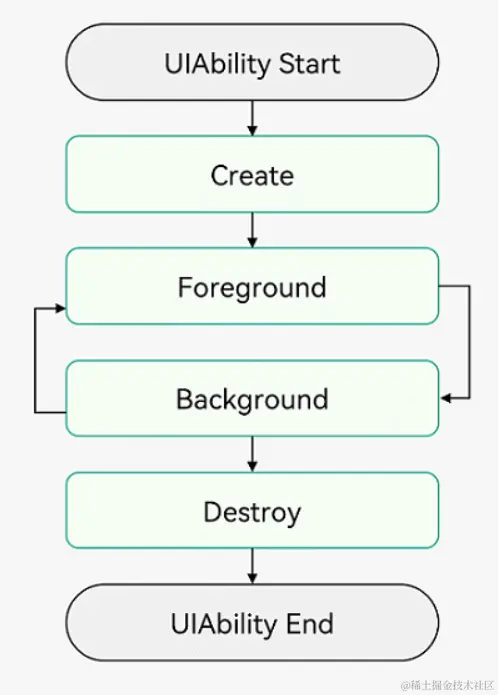 UIAbility的生命周期包括Create、Foreground、Background、Destroy四个状态,如下图所示。