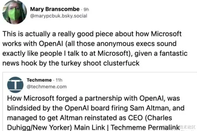 2、董事会开除奥特曼后的种种大戏:从Mira短暂上位CEO,到七百人实名请愿希望董事会离职,再到奥特曼和Brockman一度答应入职微软、领导新的AI研究室……一系列应急措施均由微软介入主导。