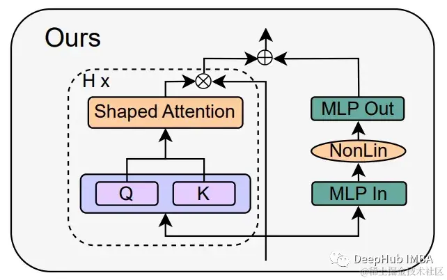 简化的跳过连接:该方程引入了一个简化的跳过连接,它聚合了MHA和MLP块的贡献。这与传统的Transformer 不同,传统的Transformer 通常与每个子块相关联。