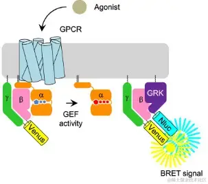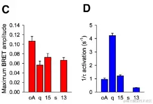 为了量化检测 GPCRs-G 蛋白选择性,研究人员使用 BRET 技术在活体细胞中测量了 G 蛋白的活性。