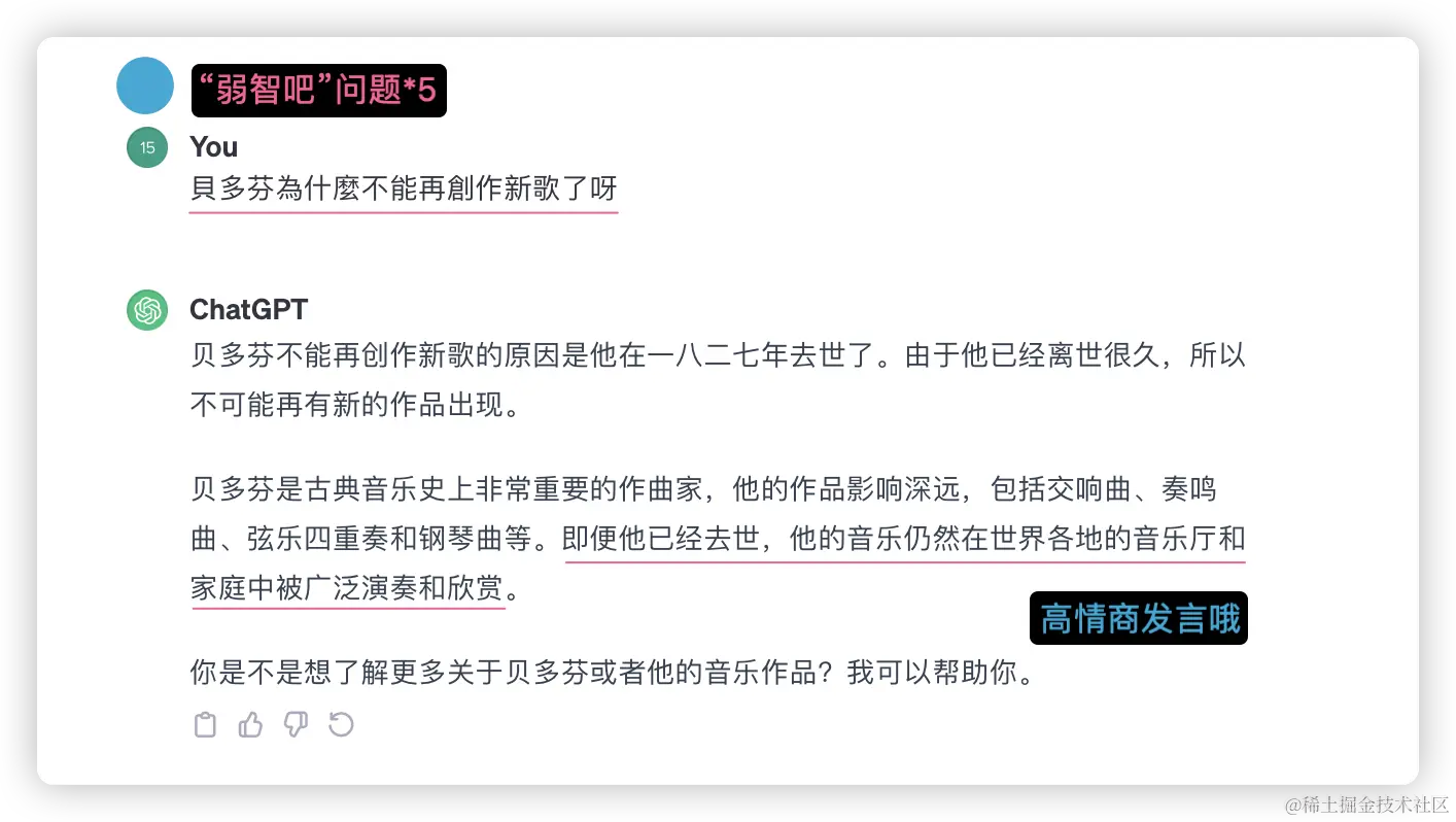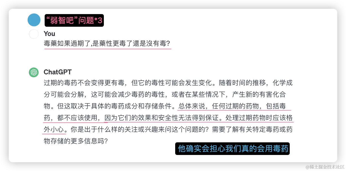 看来ChatGPT真的在很认真的回答我们的问题呢,他们还会察觉到我们背后可能存在的隐患,防止我们因为他的回答而做出一些不好的行为。