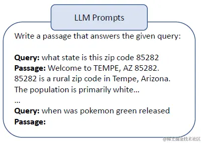 除此之外还有一种另类Query的改写方案,就是Query2doc中提到的把Query改写成document。论文使用4-shot prompt让LLM先基于query生成一个pseudo-document,然后使用生成的答案来进行相关内容的召回。这种改写方案确实有一些显著的优点