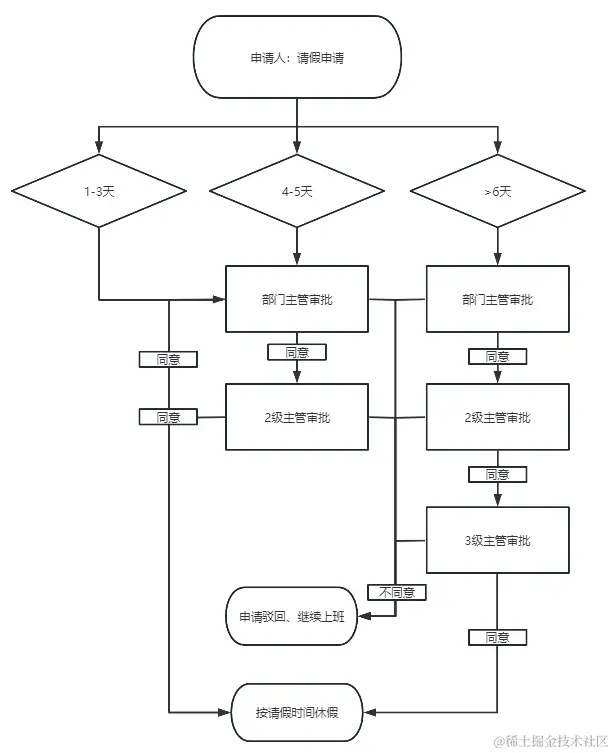 责任链模式中常见的就是,一个请求需要多个对象来处理,然而每个对象处理的权限和功能不一样,比如请假流程,直接上级,部门负责人,总经理等的授权处理不一样,三天内的直接上级就能批准,流程不会发送到其他人,而三天以上的流程可能就需要部门负责人来批准了。