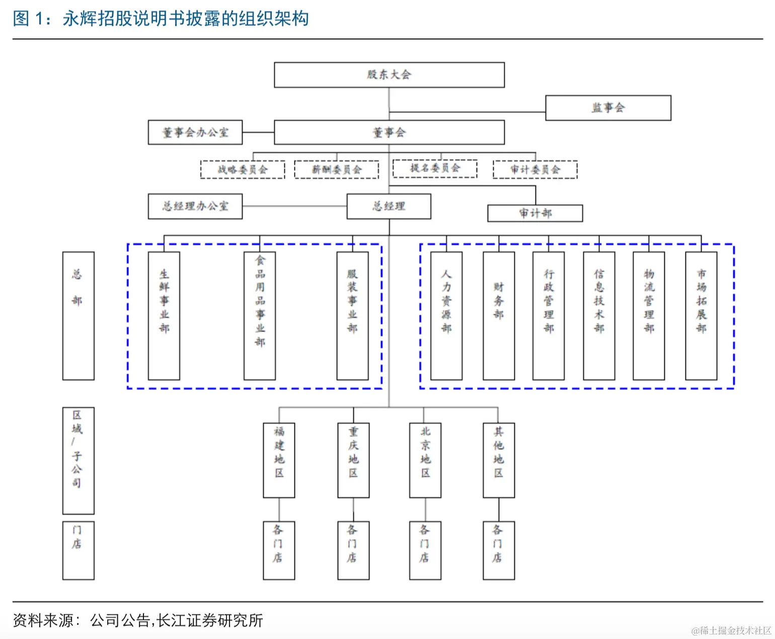 下面列举了永辉2010招股书、苏宁易购2013披露的组织架构。