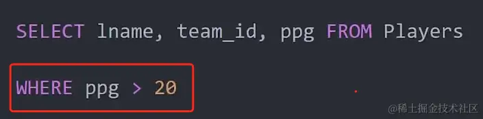 但我们可能不需要表中的每一行,因此我们使用 WHERE 关键字过滤结果,以仅包含满足特定条件的记录。