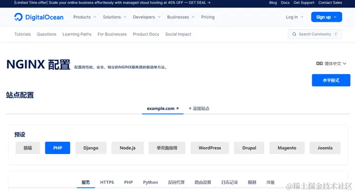 如果你想在线进行配置,只需要打开网站:nginxconfig.io/,按照自己的需求进行操…