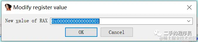 - 设置程序计数器(Ctrl + N):强制代码从光标位置处开始执行,不太清楚会不会导致程序错误,暂未尝试,因为只设置了 RIP,没正确设置其他寄存器,当进入函数时,有可能因为参数等问题报错,除非是用于函数内部走分支。