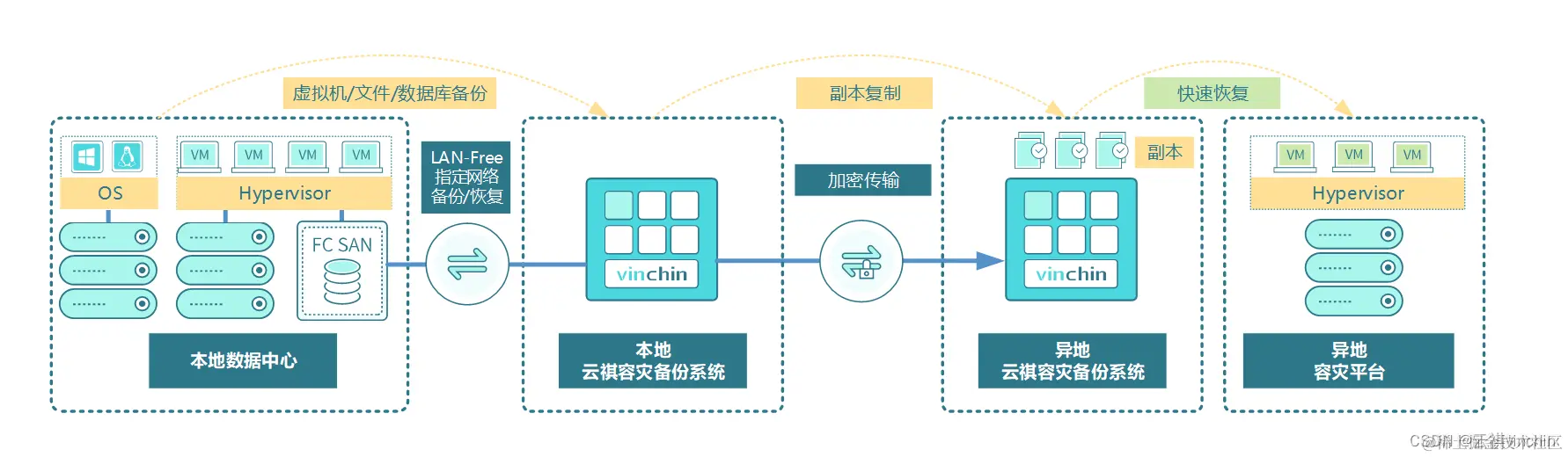 - 本地备份系统通过副本功能,将备份下来的数据再传输到异地备份系统中