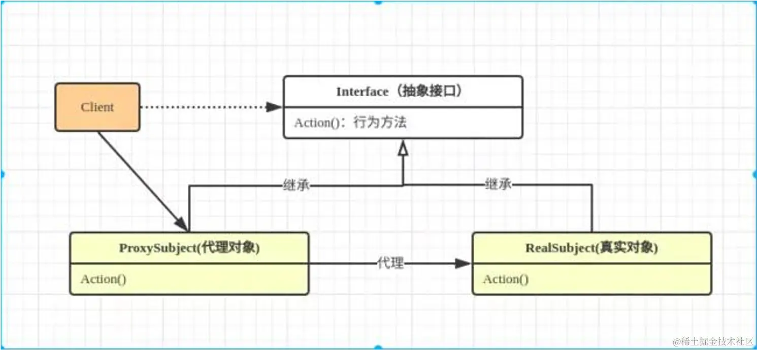 抽象角色:指代理角色和真实角色对外提供的公共方法,一般为一个接口;