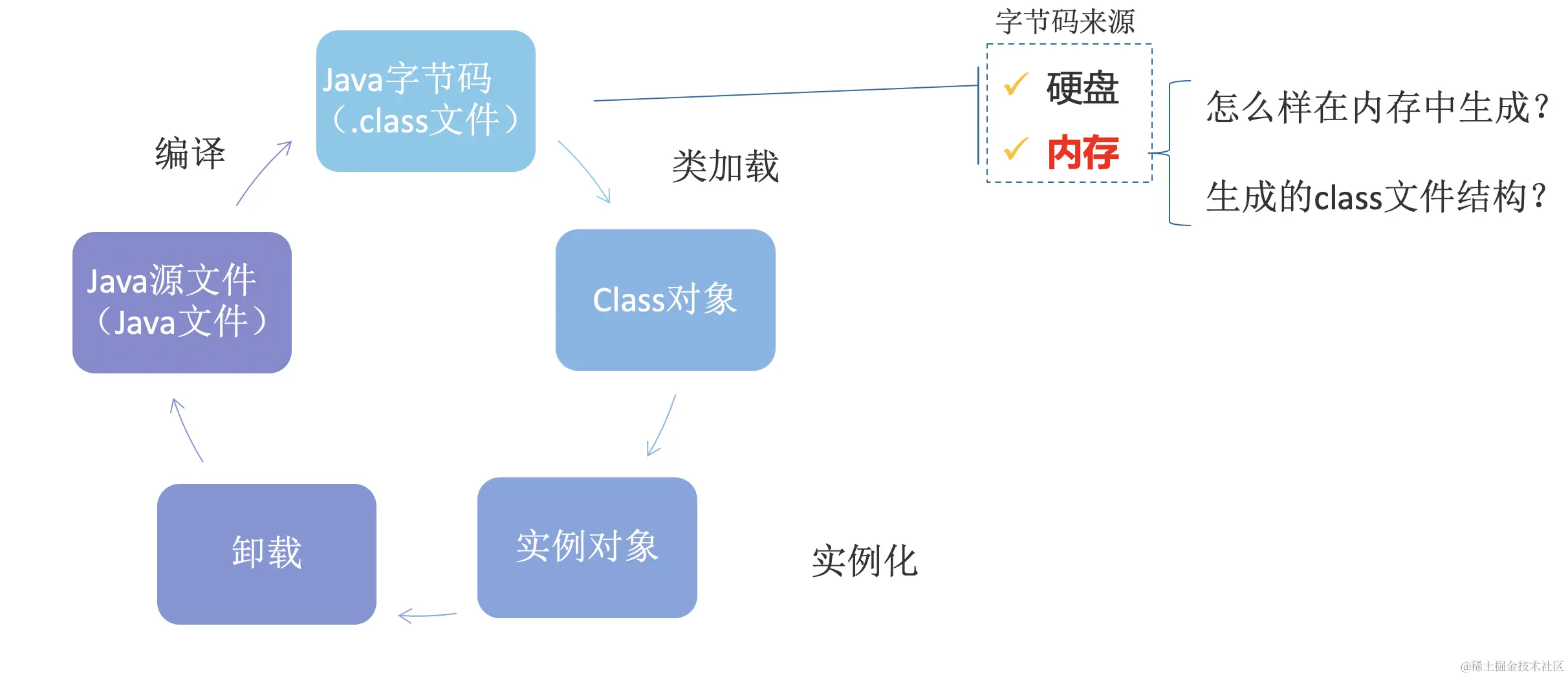 class 是由 javac 把 .java 文件编译成 .class,是一个实实在在存在的文件,存放在我们的硬盘中,而 动态代理 帮我们生成了一个 .class 是没有这个文件的,而是直接在内存中 一份实例化对象。