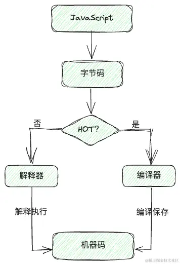 - 如果发现热点代码(HotSpot),后台编译器 TurboFan 会将热点代码编译成机器码并保存,进而提升执行效率。