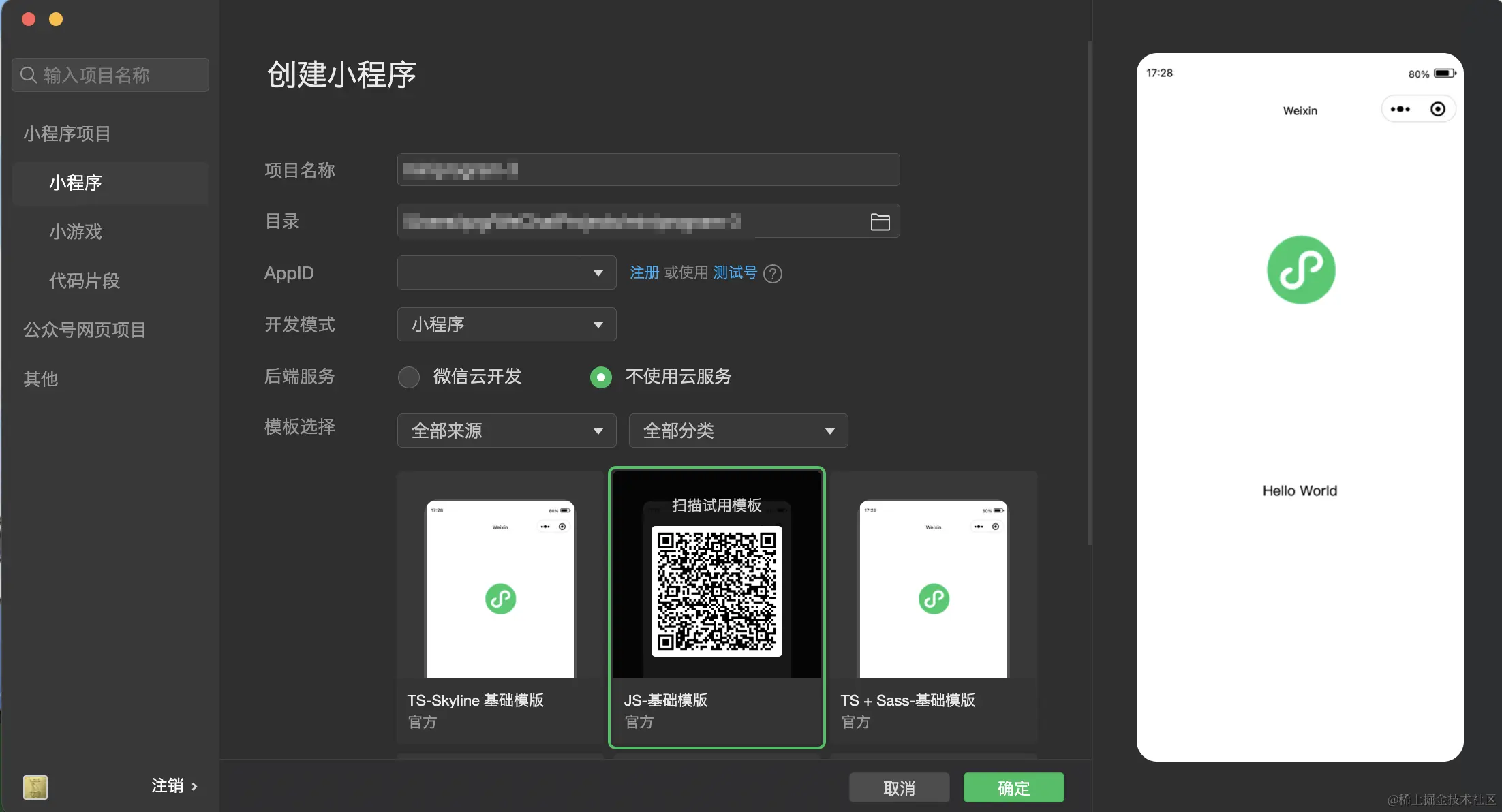 微信开发者工具(新版) 集成了公众号网页调试和小程序调试两种开发模式。