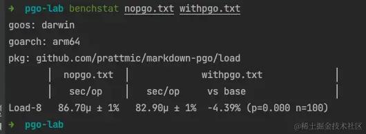 最后通过 benchstat nopgo.txt withpgo.txt对比结果