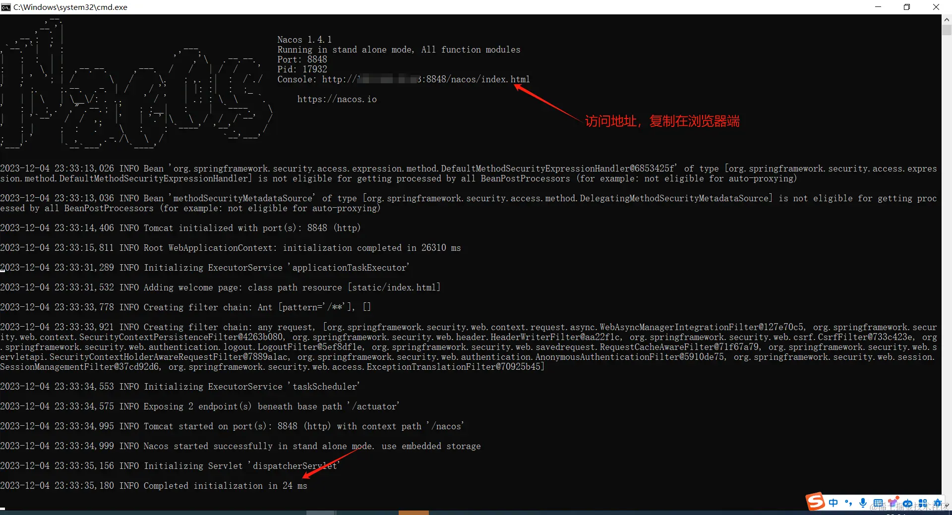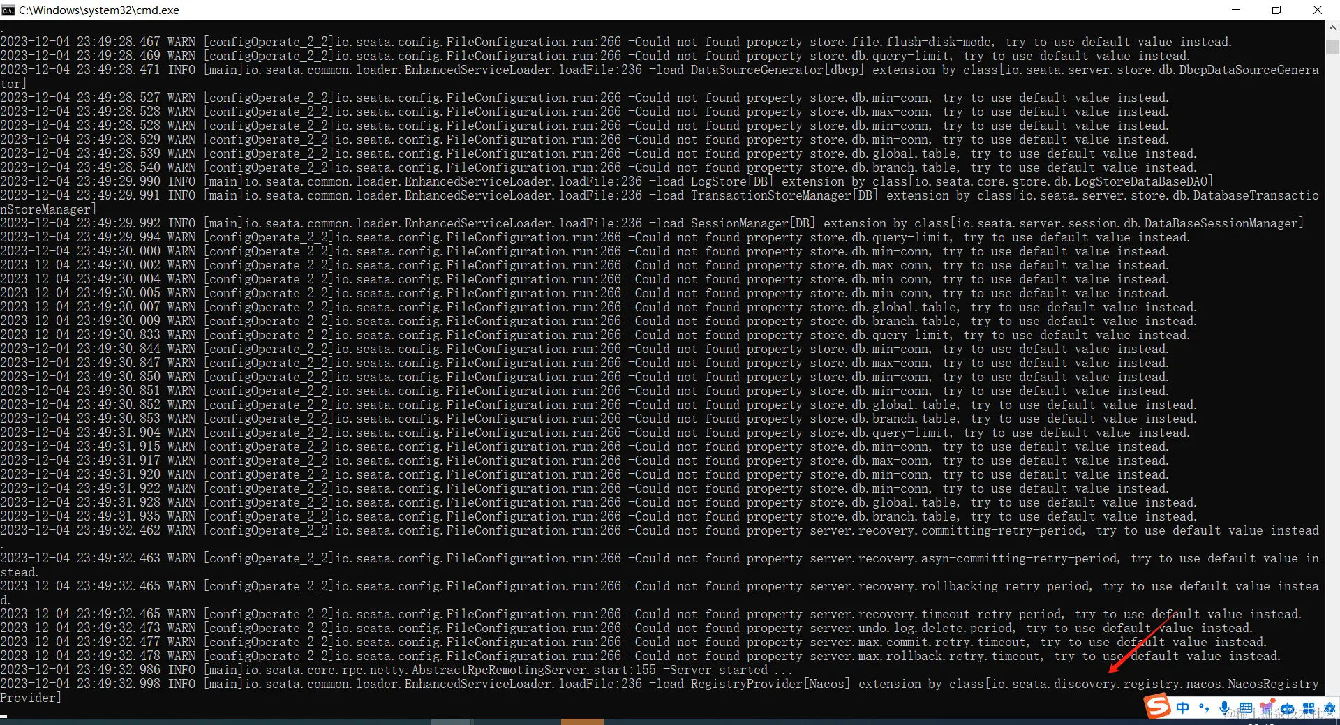 启动seata-server,(注意在nacos正常启动前,否则会闪退) 在:${bshPath}\seata\bin 下点击seata-server.bat启动