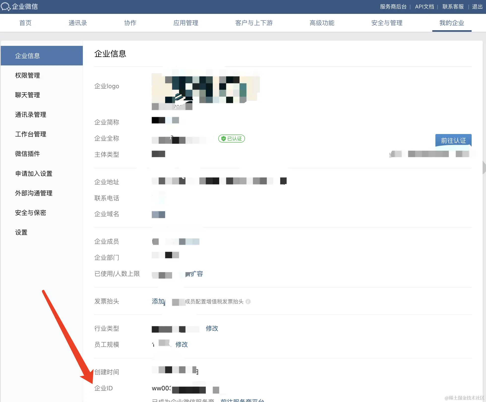 wechatcom_corp_id:我的企业->企业ID