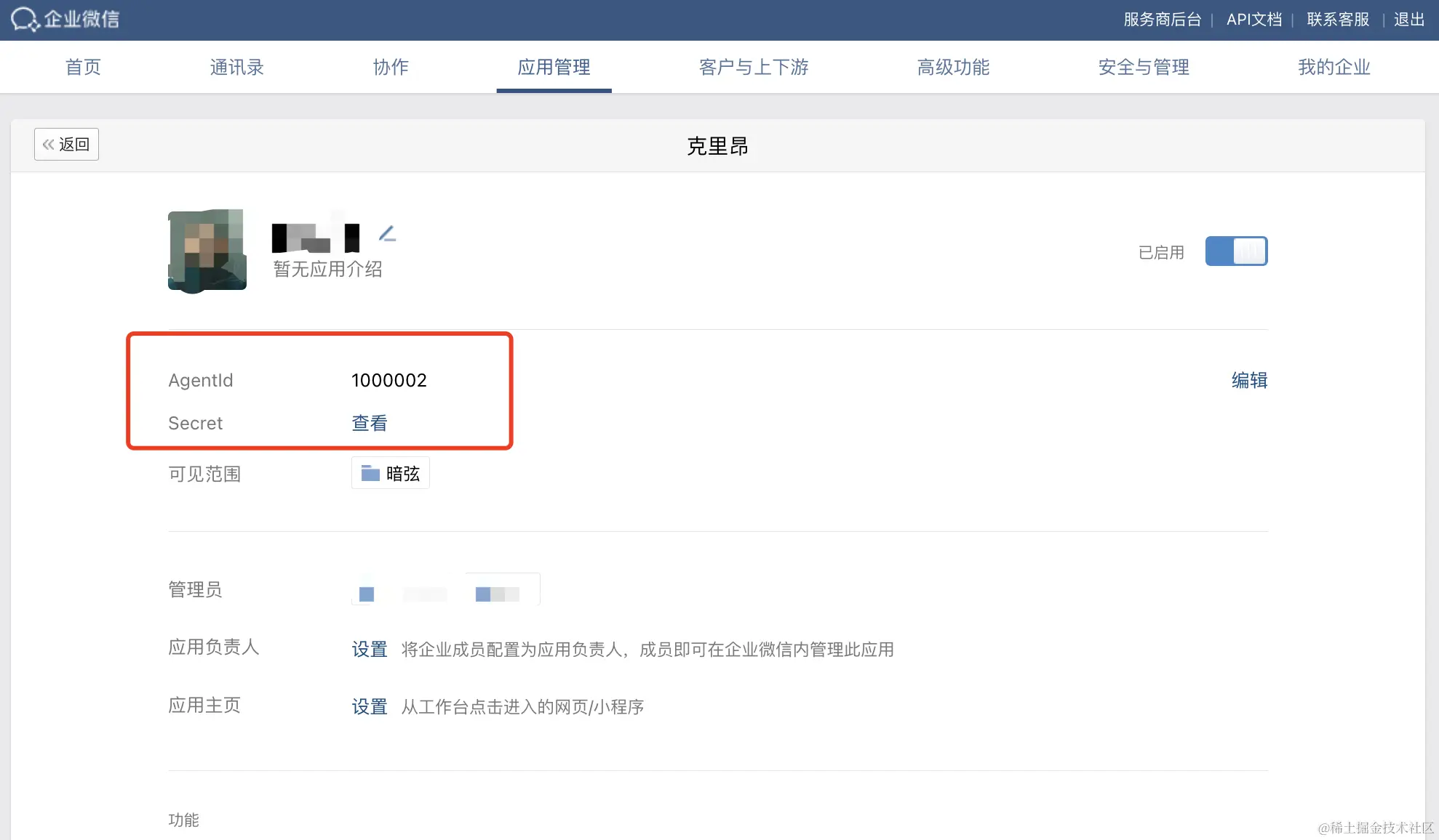 wechatcomapp_agent_id:应用管理-> 进入应用 -> AgentId