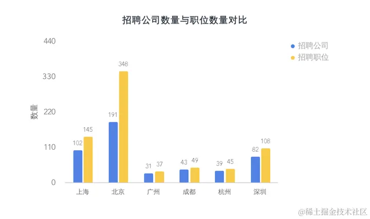 再从常用的招聘软件来看,目前互联网行业用的应该是 XX 直聘。我们从其提供的招聘岗位数量来看。