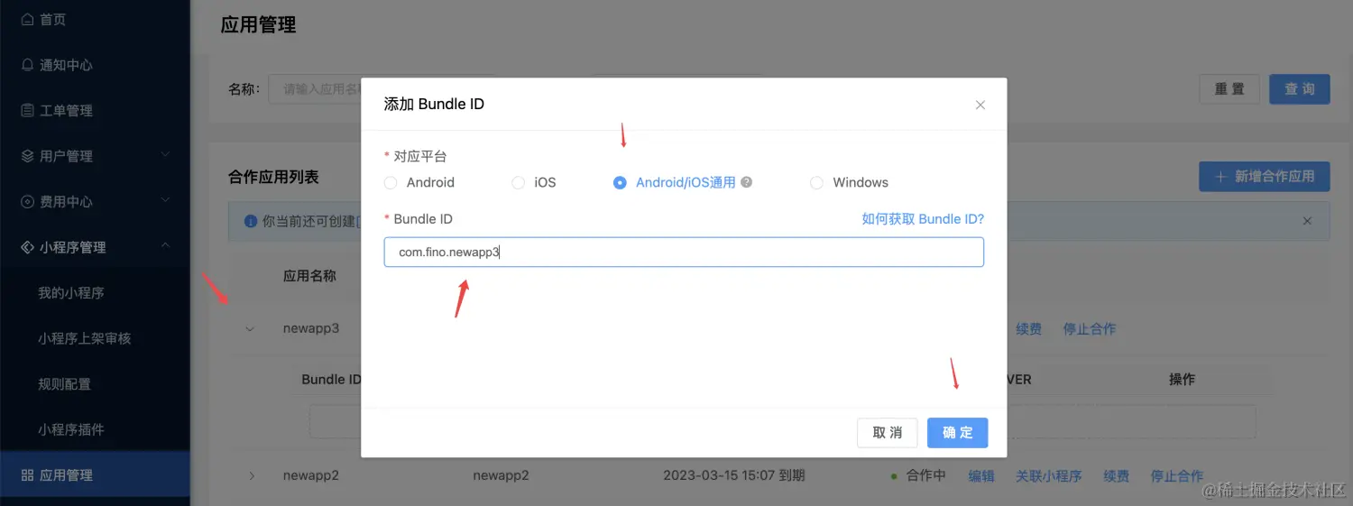 登录FinClip 后台,在小程序管理->我的小程序新增一个小程序。