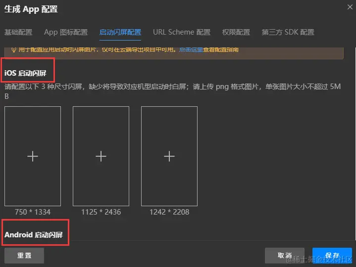 打开 App 时的加载的图片,上传 iOS 与 Android 平台中相应尺寸的图片即可。