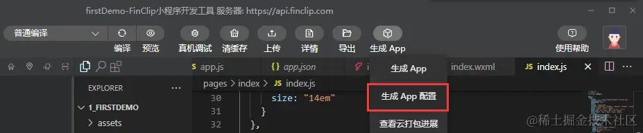 此时你需要先进行生成APP相关配置。点击IDE的菜单栏生成APP->生成APP配置。