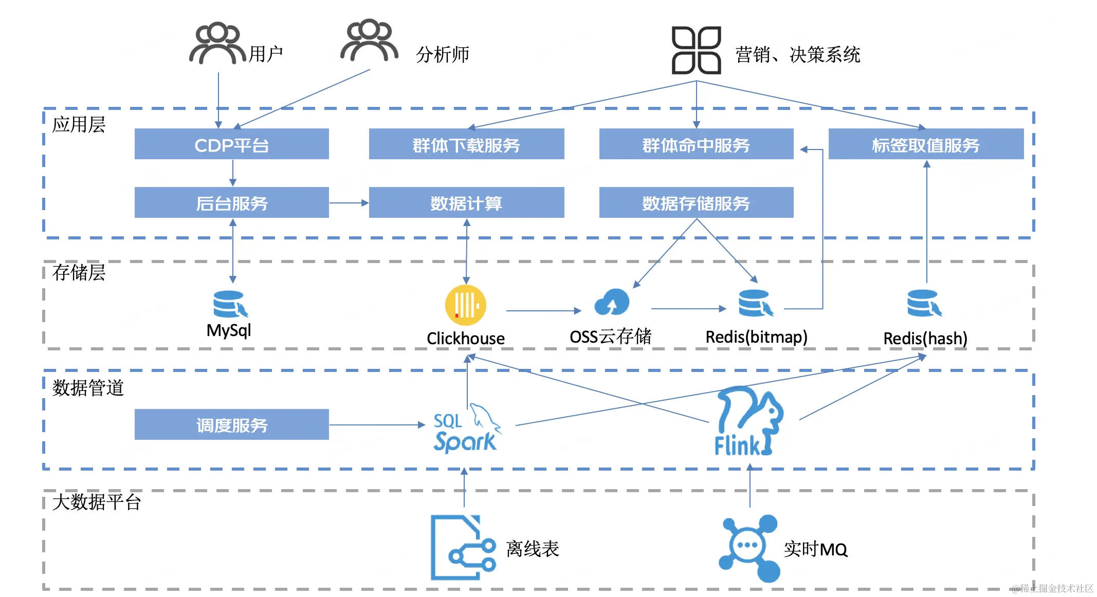 目前平台拥有百亿+的用户ID、5000+的标签,单个人群包内的用户数量可达数十亿级,每天更新的人群也有2W多个。