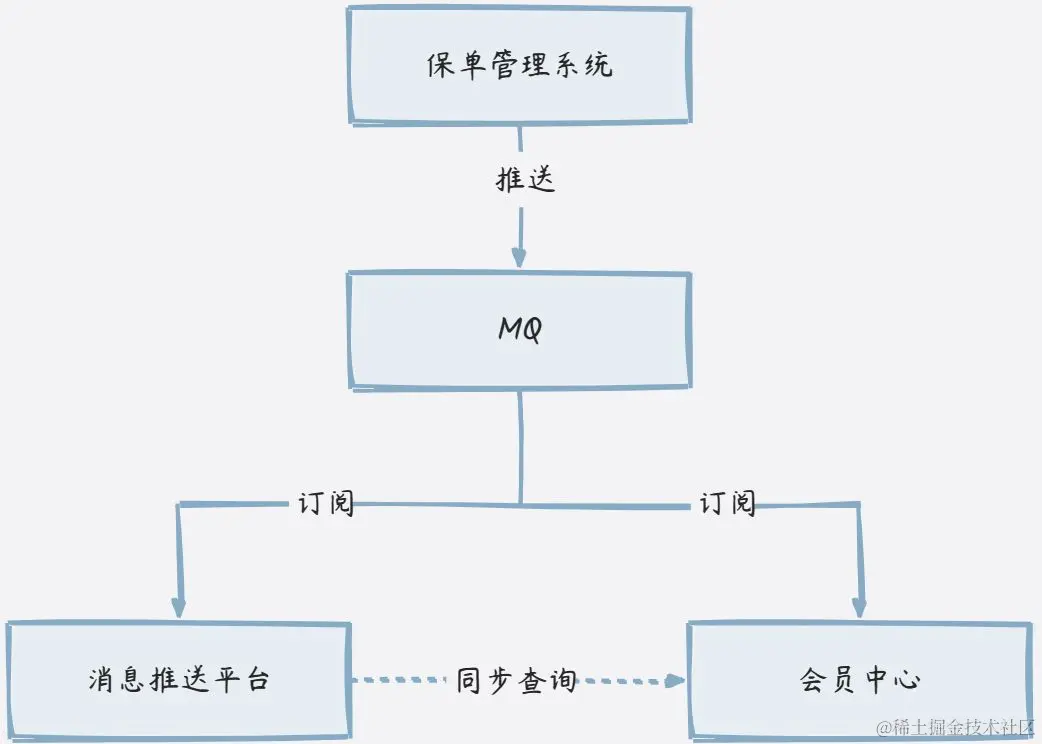 在我们的系统中当客户完成支付后,保单管理系统会通过 MQ 推送出一条包含保单信息的消息,该消息被多个系统订阅。