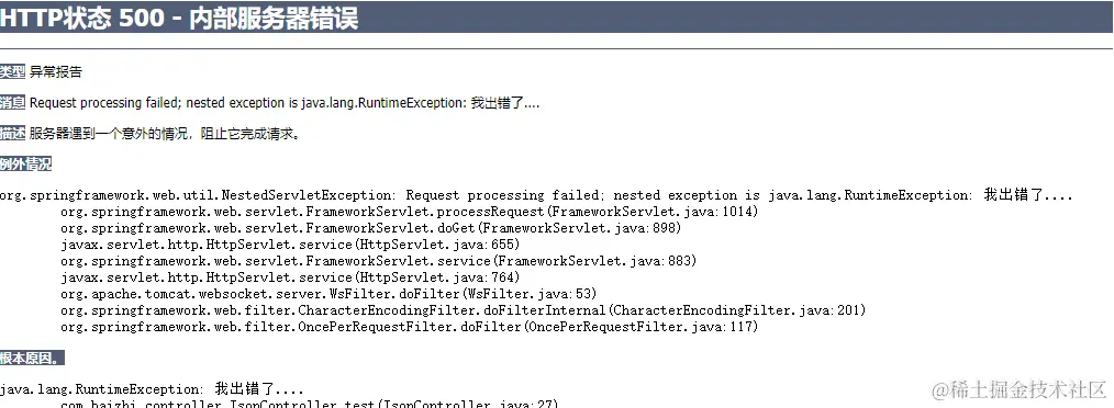 在处理用户请求出现运行时异常直接响应给用户的是一个错误节目,对于用户的使用体验不友好。