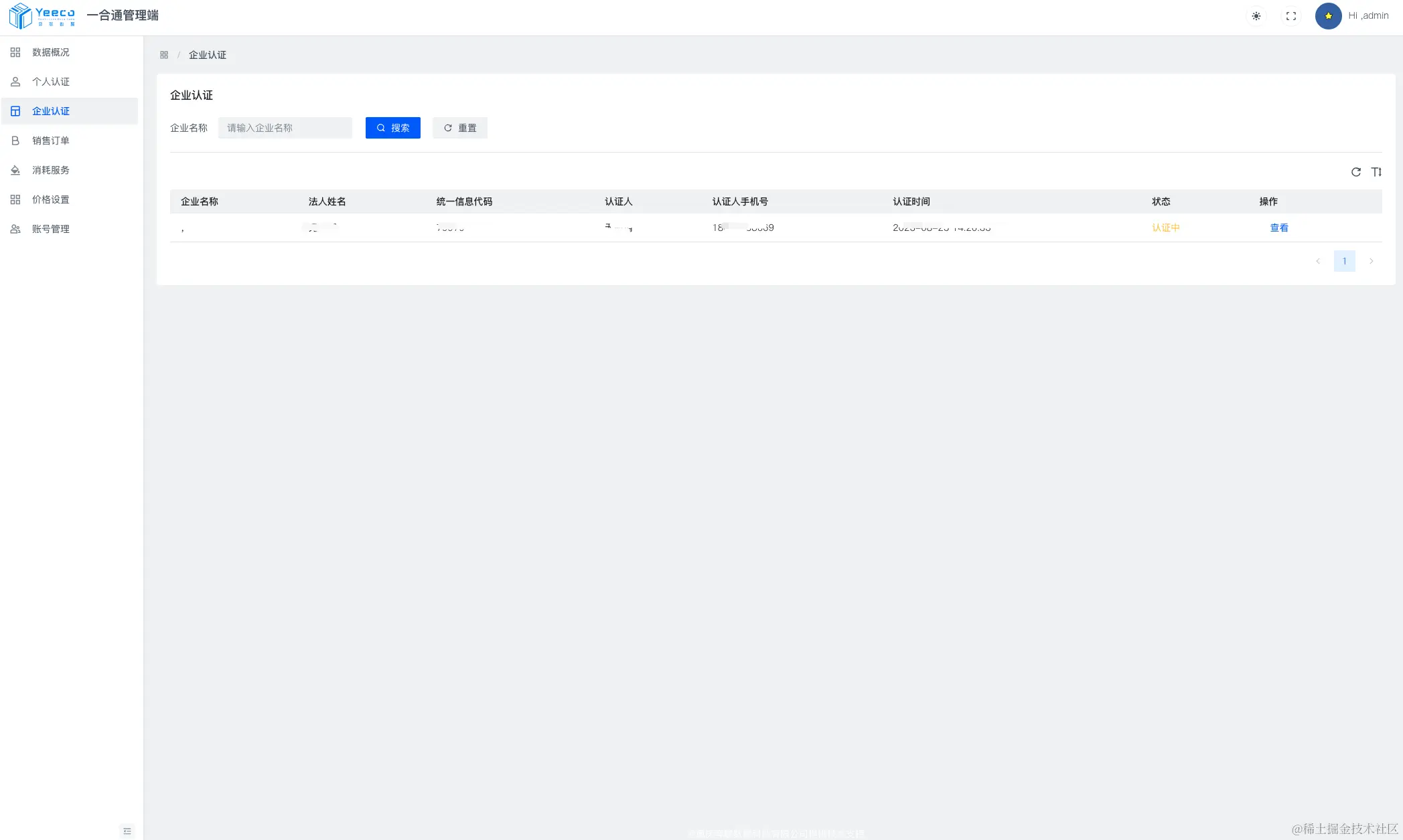 平台可查看到脱敏后的所有企业认证的基本信息