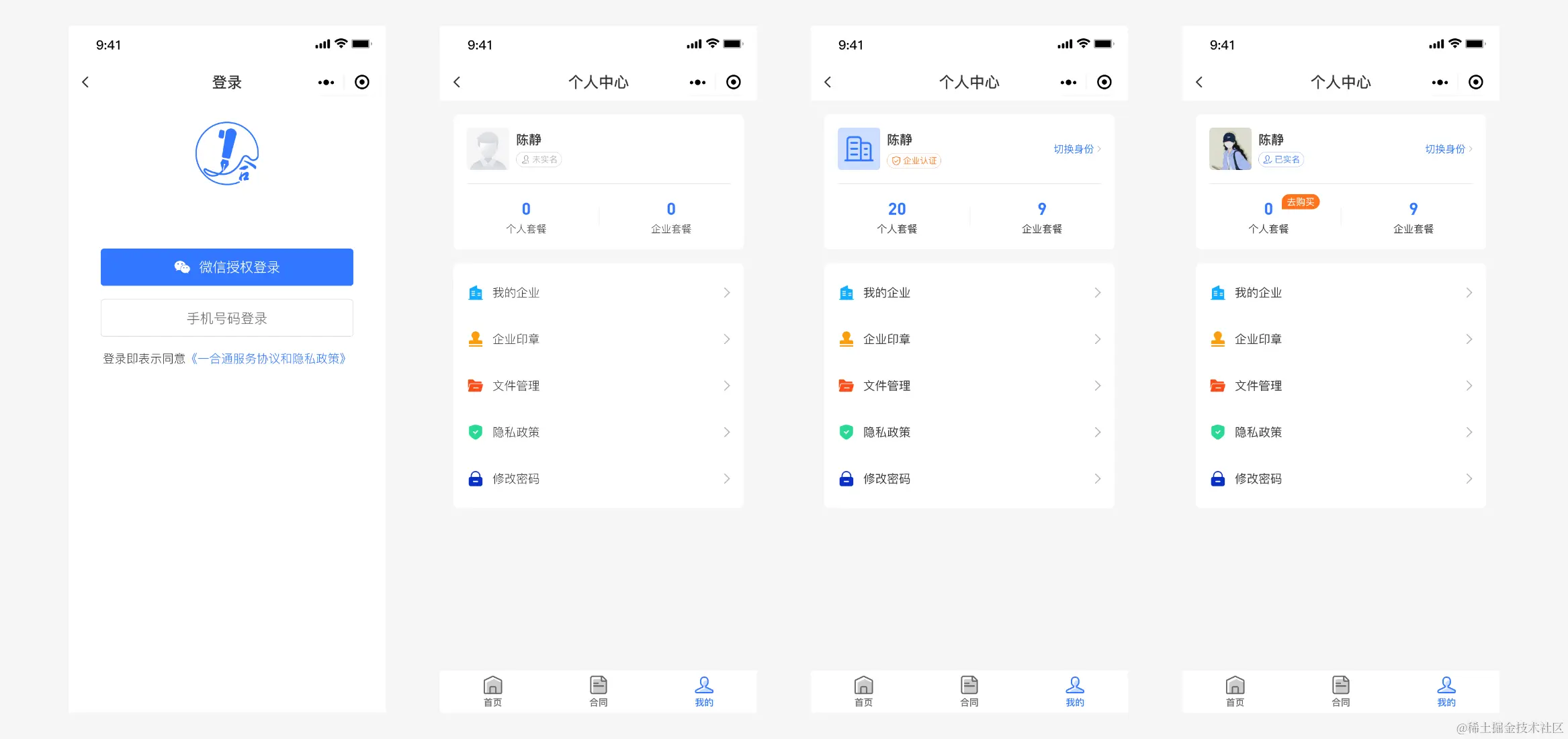 Web 用户端支持,“个人” 和 “企业” 不同身份的切换