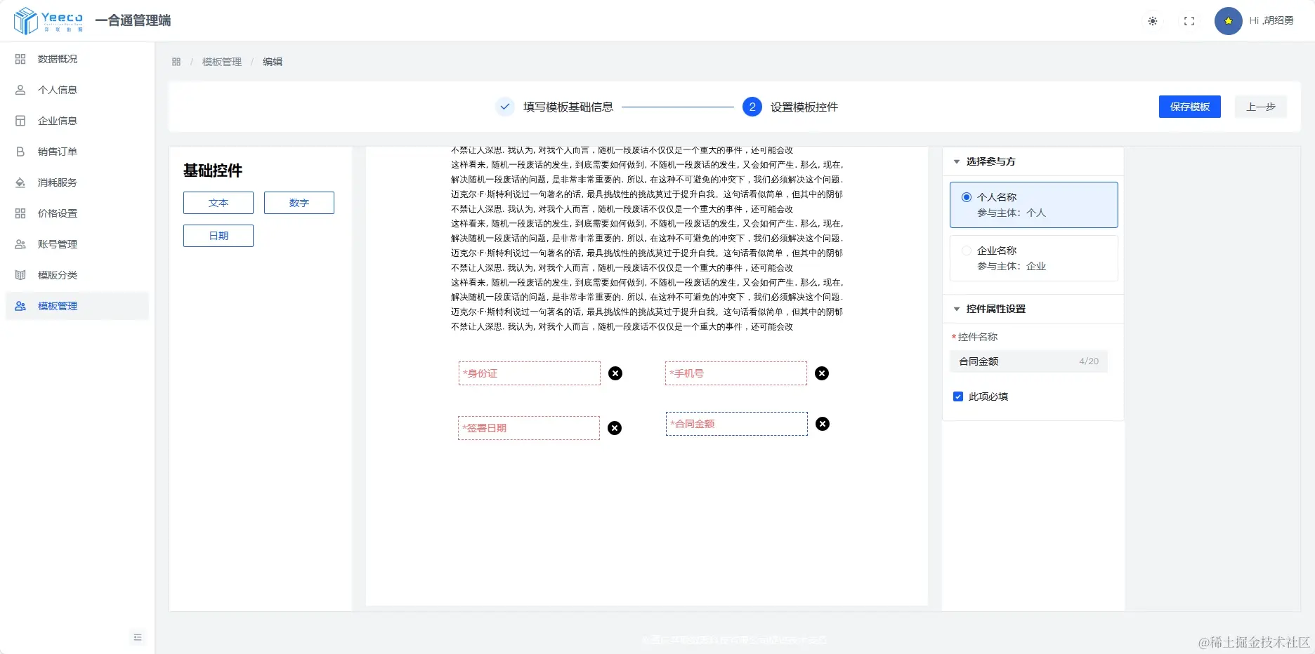合同模板支持动态设置里面的参数信息,也可以提前预设一些参数信息,从而大大的增加了合同的灵活性