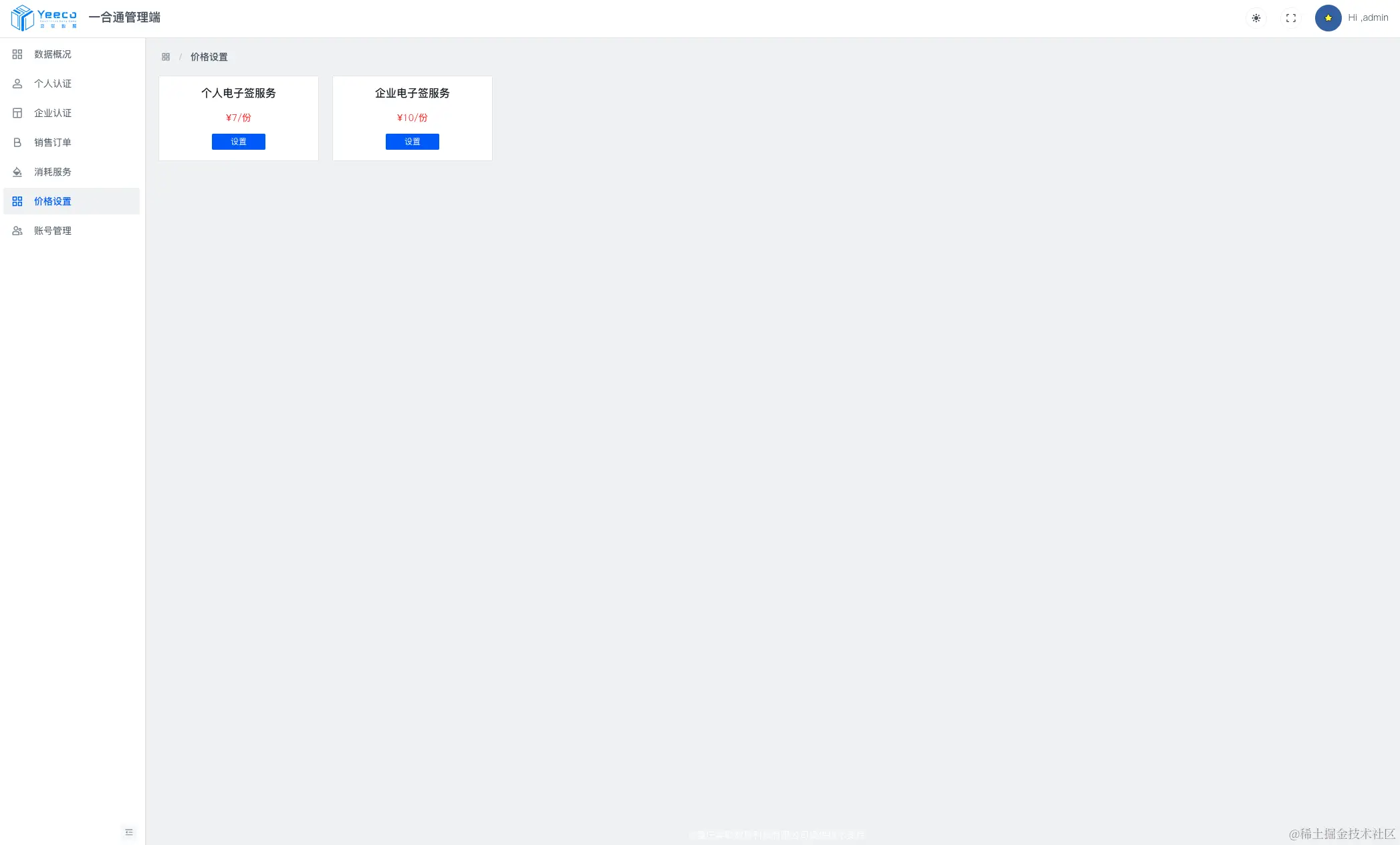平台可根据自己合同运营情况设置相应的价格,可单独对企业和个人的合同购买金额进行设置