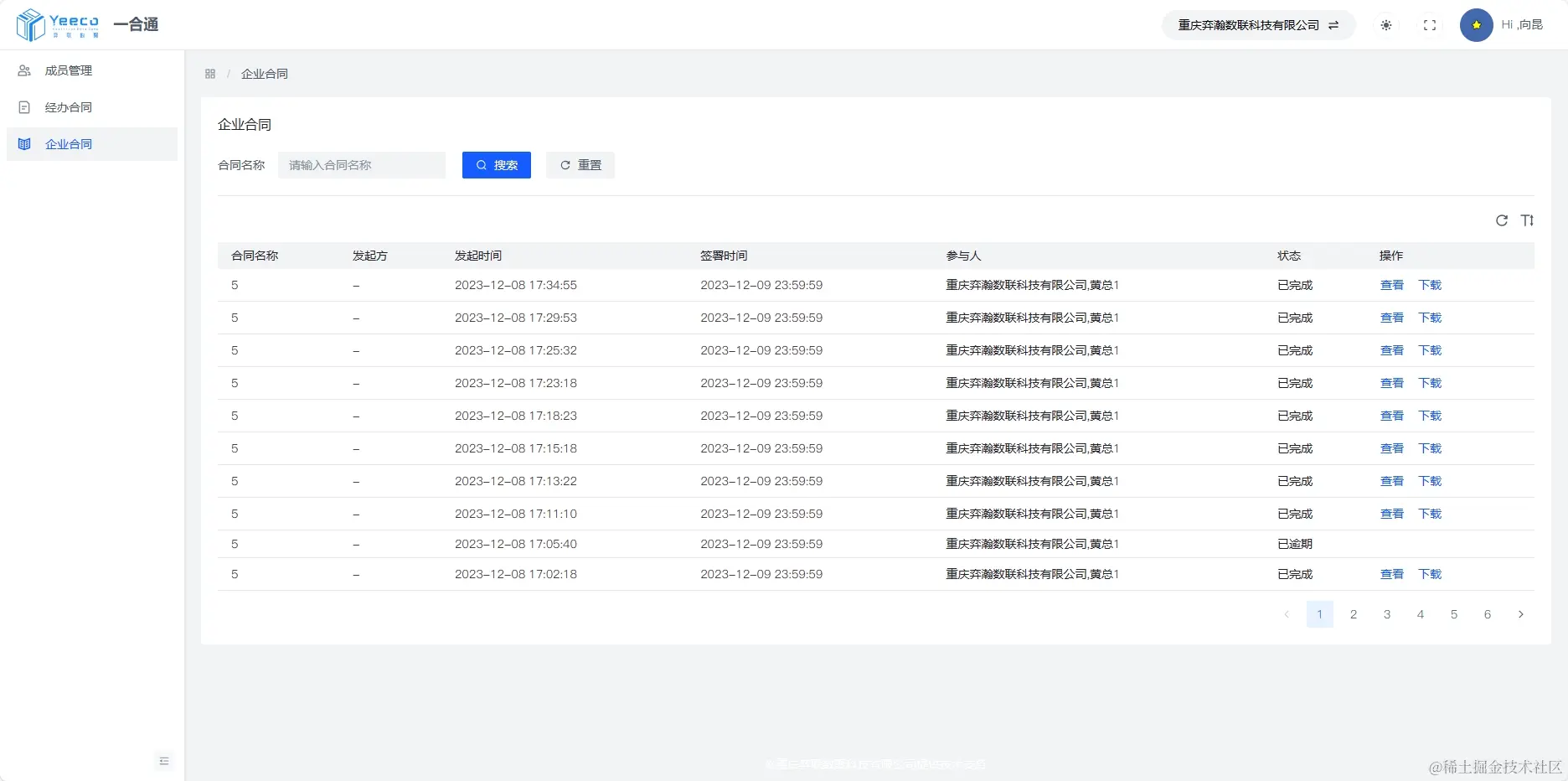 作为企业管理人员或者个人在Web端能查看到所有已经签署过并且归档的合同,支持在线查看,下载等操作